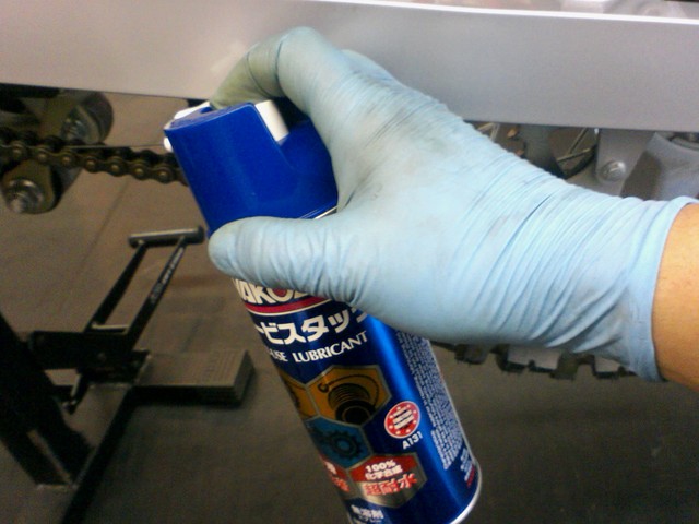 チェーンルーブの代わりに、ワコーズ:ビスタックをドライブチェーンに塗ります