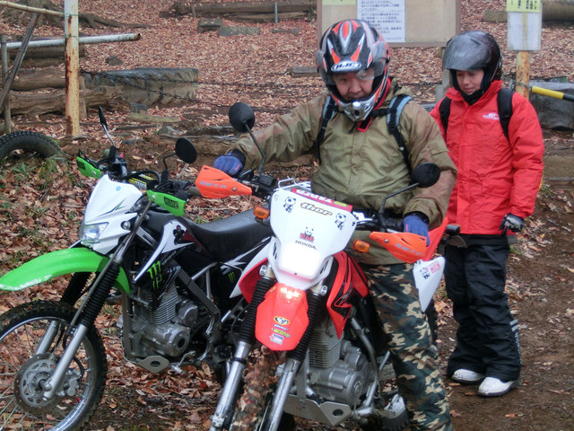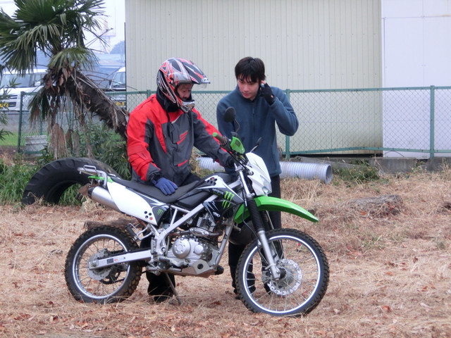 KLXを借りてギアチェンジ講習から開始