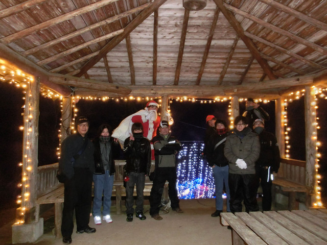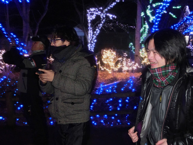 今年現れた丘の上のイルミネーションで記念撮影