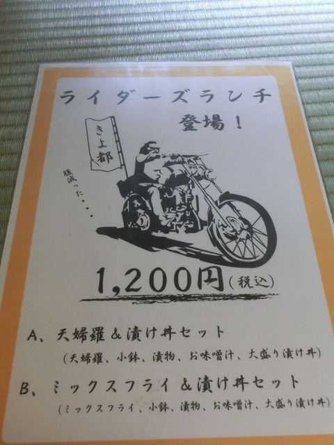 何と ライダーズランチなるメニュウーを用意して