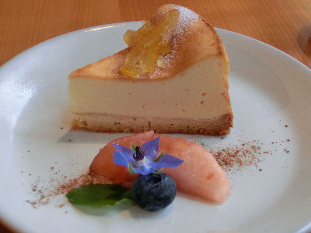 チーズケーキには 食べられるお花